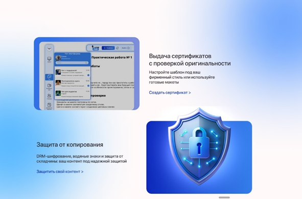 Платформа поддерживает различные форматы материалов — от видеоуроков и текстовых лекций до интерактивных тестов и заданий. Кроме того, CourseHub предлагает возможность автоматизации процессов, таких как измерение и выдача сертификатов, что значительно экономит время преподавателей и позволяет им сосредоточиться на самом важном — на передаче знаний.